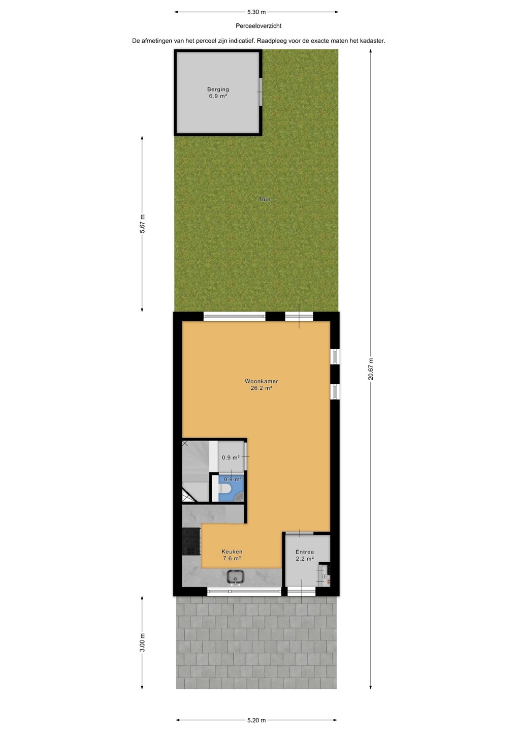- Vrijstaande houten berging met elektra in de achtertuin;