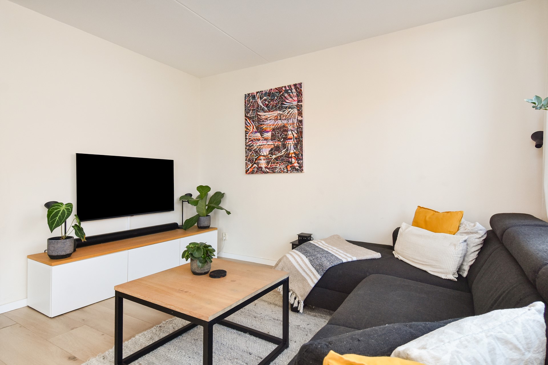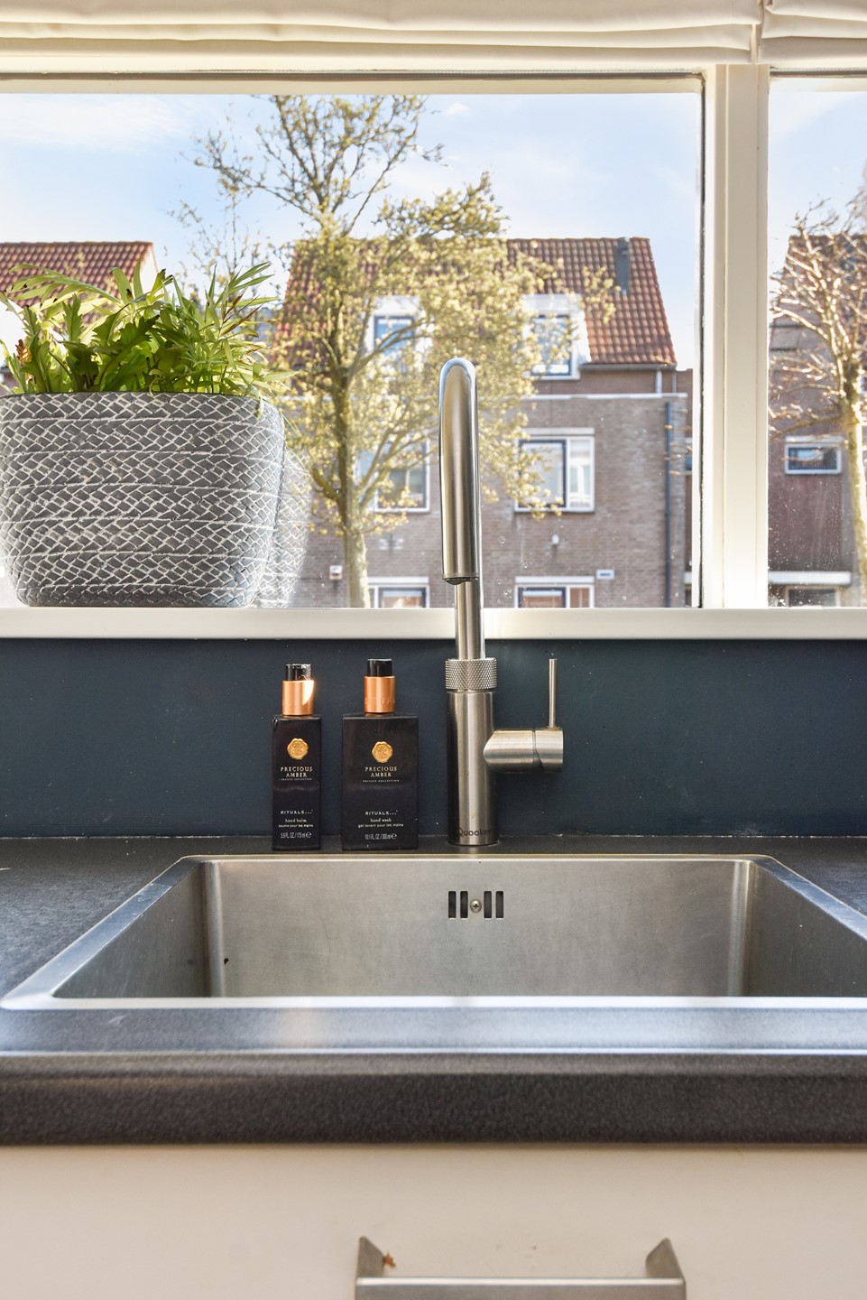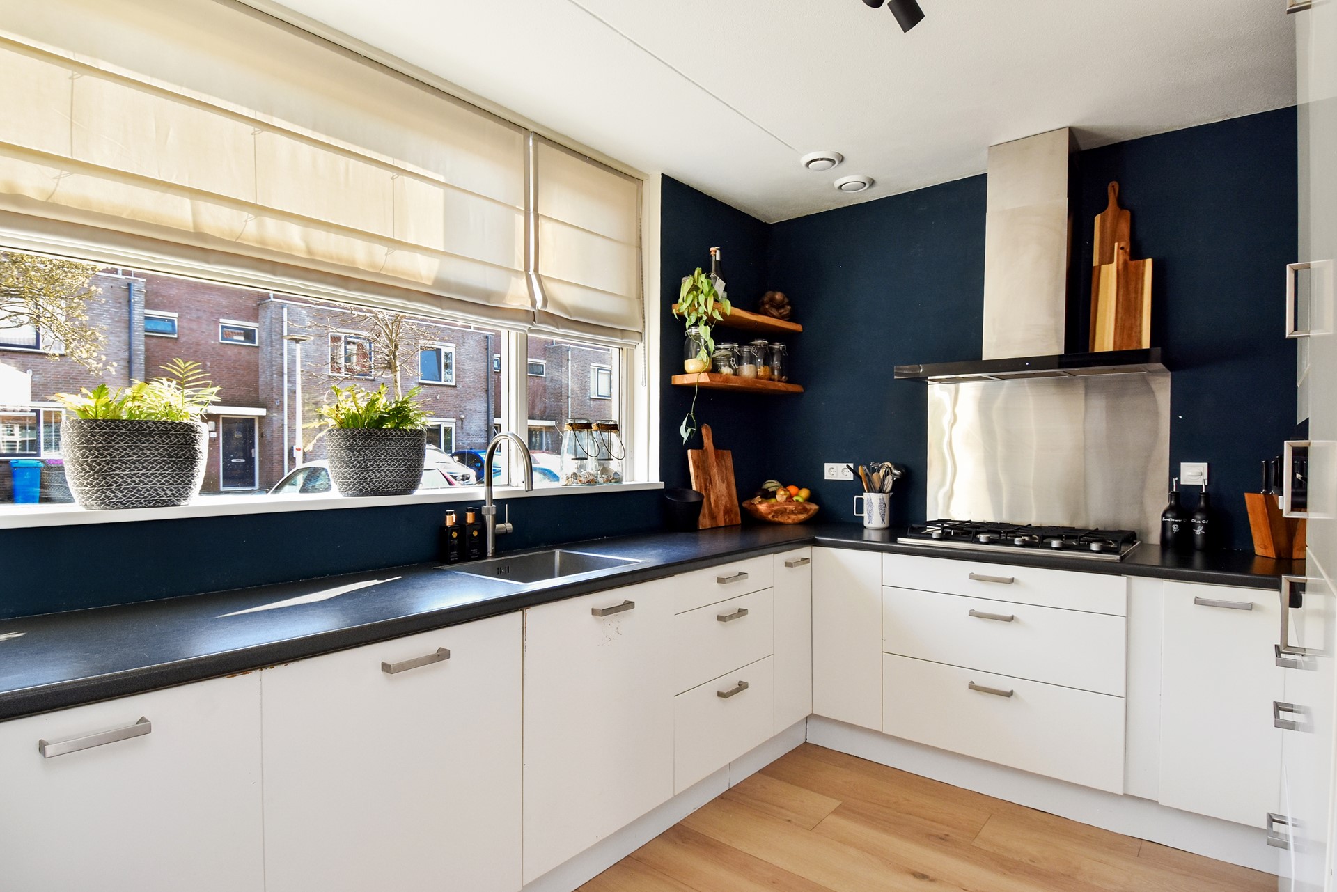 De tuingerichte woonkamer is heerlijk licht, voorzien van een moderne laminaatvloer. Vanuit de woonkamer met extra raampartijen aan de zijkant heb je toegang tot de zonnige achtertuin met vrijstaande houten berging en achterom.