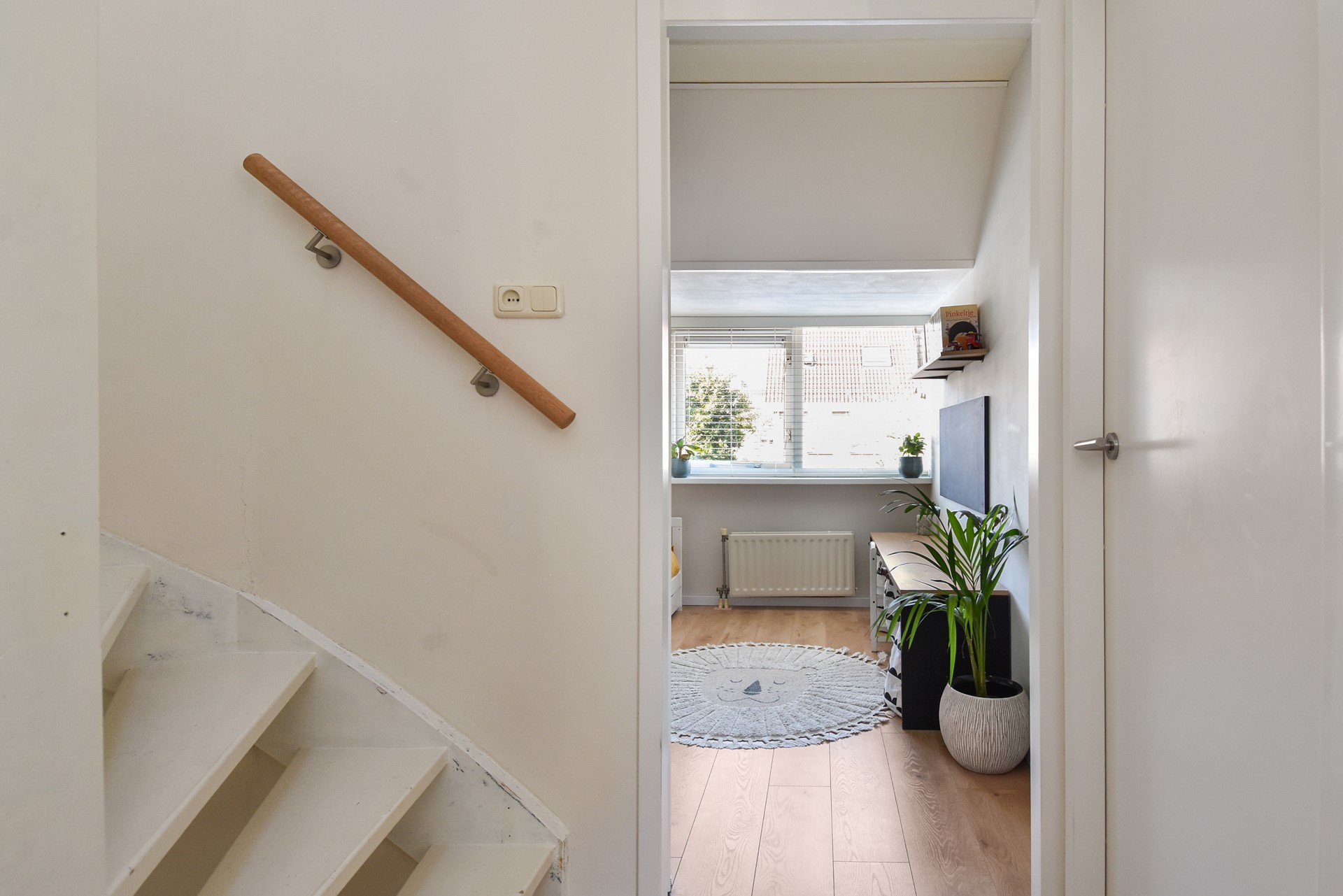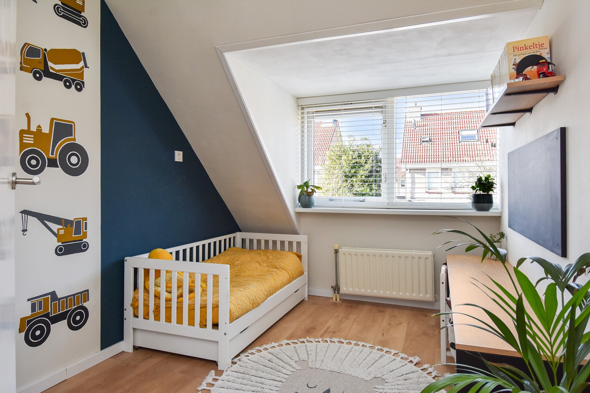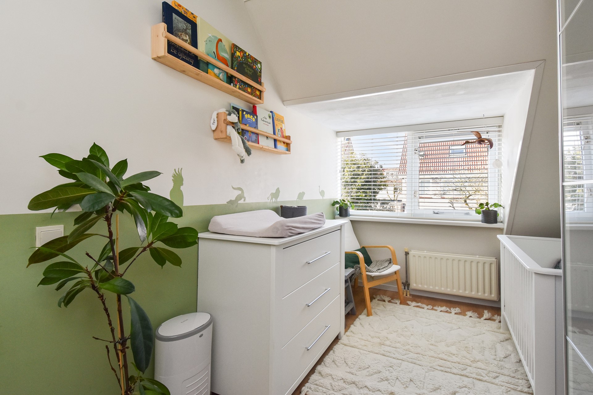 De zolderverdieping biedt een royale goed ingedeelde ruimte met aan de voorzijde een dakkapel en aan de achterzijde dakramen, te gebruiken als slaapkamer, hobby-kamer of werkkamer. Naast de bergruimte achter knieschotten zijn hier praktische extra bergruimtes gecreëerd. In een afgesloten ruimte is de opstelplaats voor de Intergas cv-ketel (2025) en aansluiting voor de wasmachine.